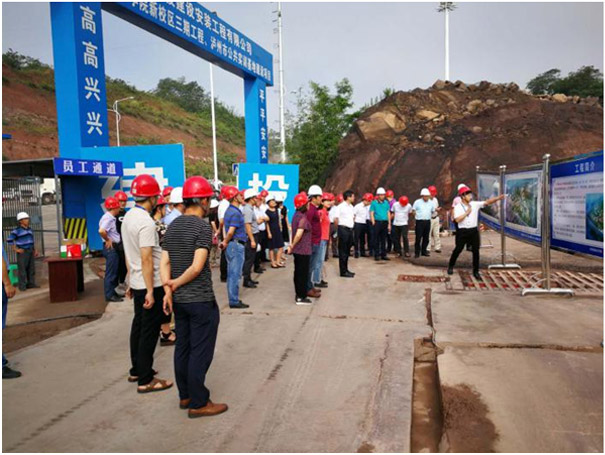 2019年6月13日,瀘州職業(yè)技術學院學校黨委書記何杰帶領團隊現(xiàn)場調(diào)研,視察了瀘職院三期工程及培訓中心,董事長石清華帶領項目部全體管理人員表示熱烈歡迎,由總經(jīng)理馮濤及副總經(jīng)理朱曉飛分別對三期工程、培訓中心進行細致講解,介紹每個單體項目的使用功能、現(xiàn)階段的進展情況及交付使用時間。施工工作得到學院團隊的一致好評,調(diào)研工作取得了圓滿成功!
